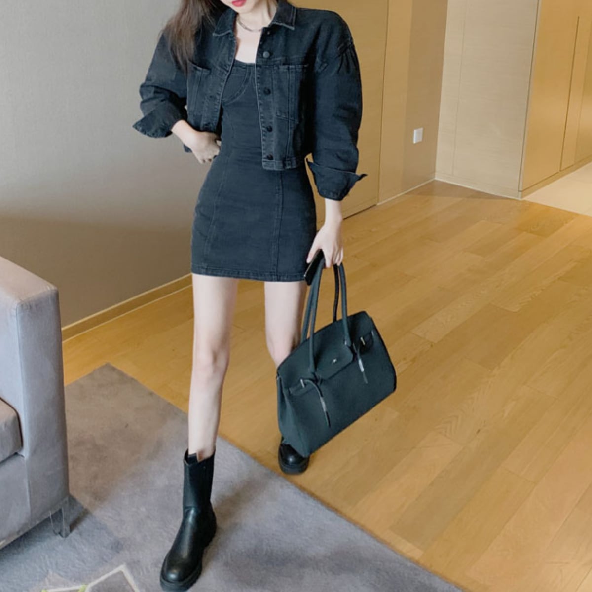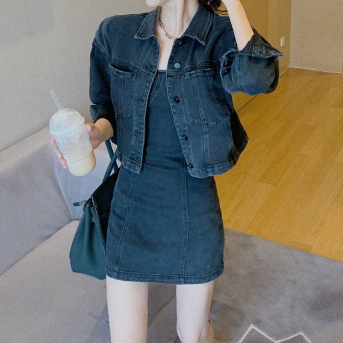 デニムジャケット×ミニキャミワンピース セットアップ C0415