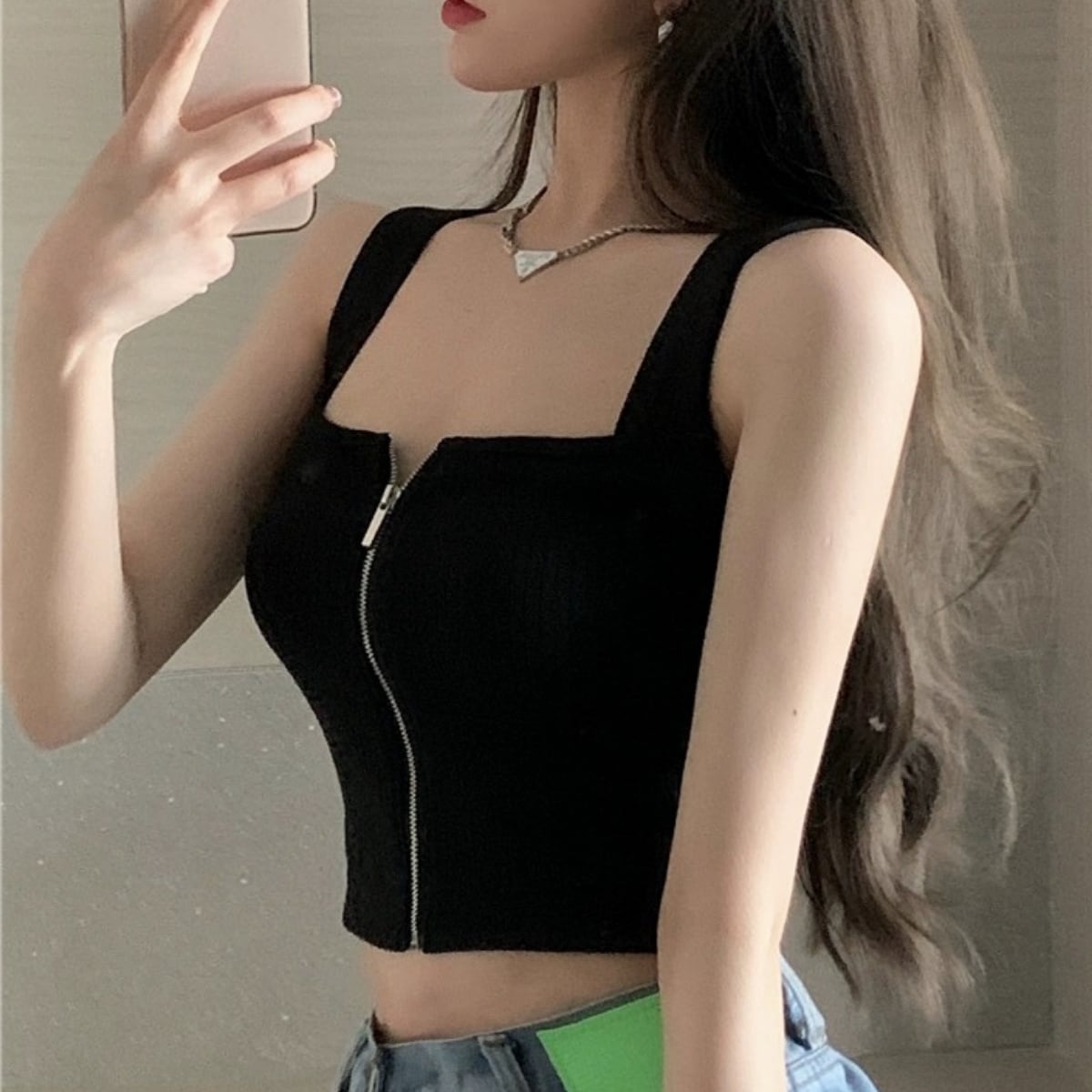フロントジップリブタンクトップ C0074