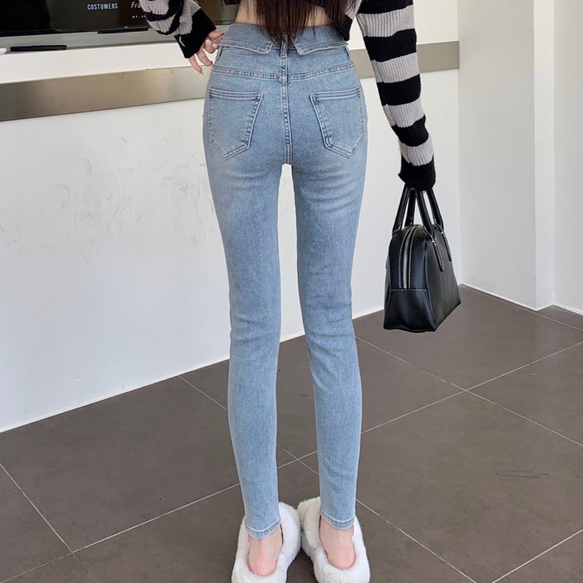 ウエストの折り返しデザインが目を惹くスキニーデニム♡