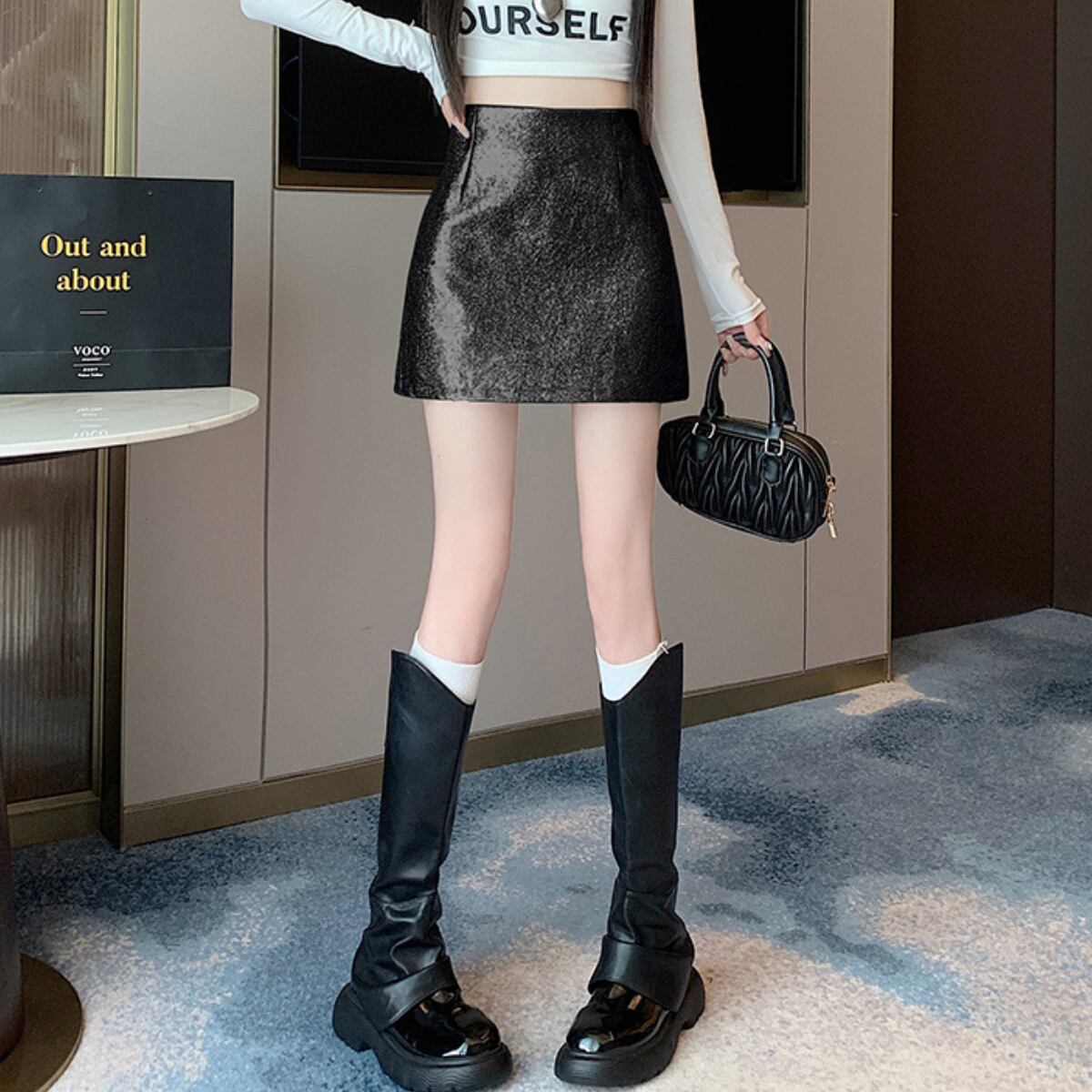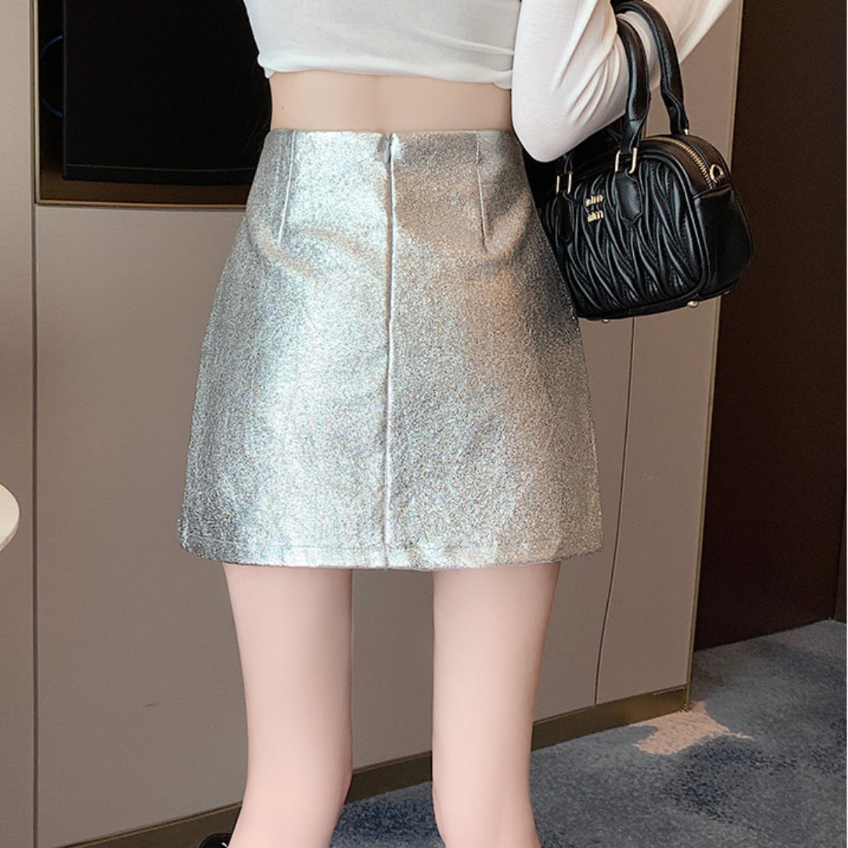 メタリックAラインミニスカート C0379